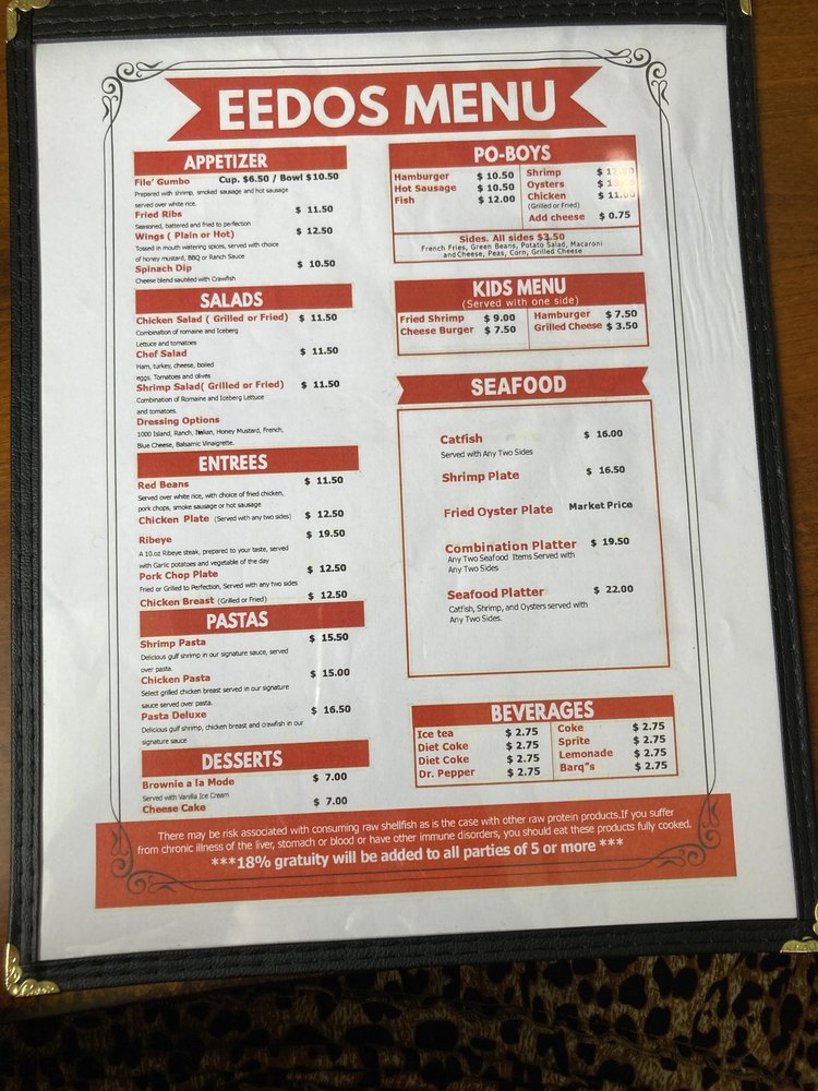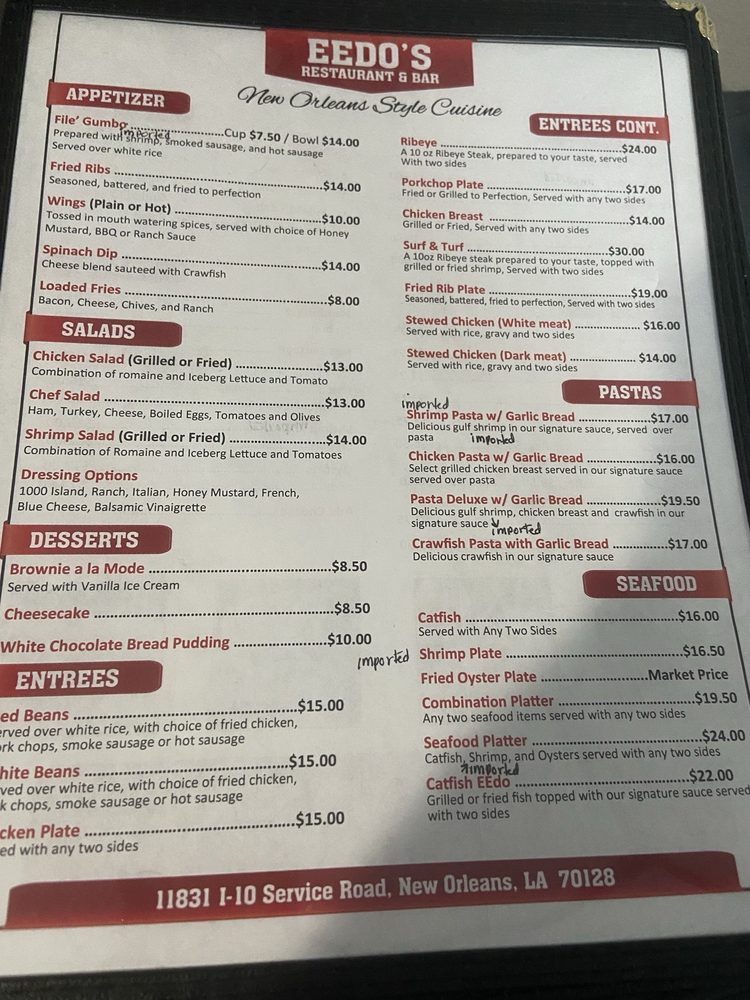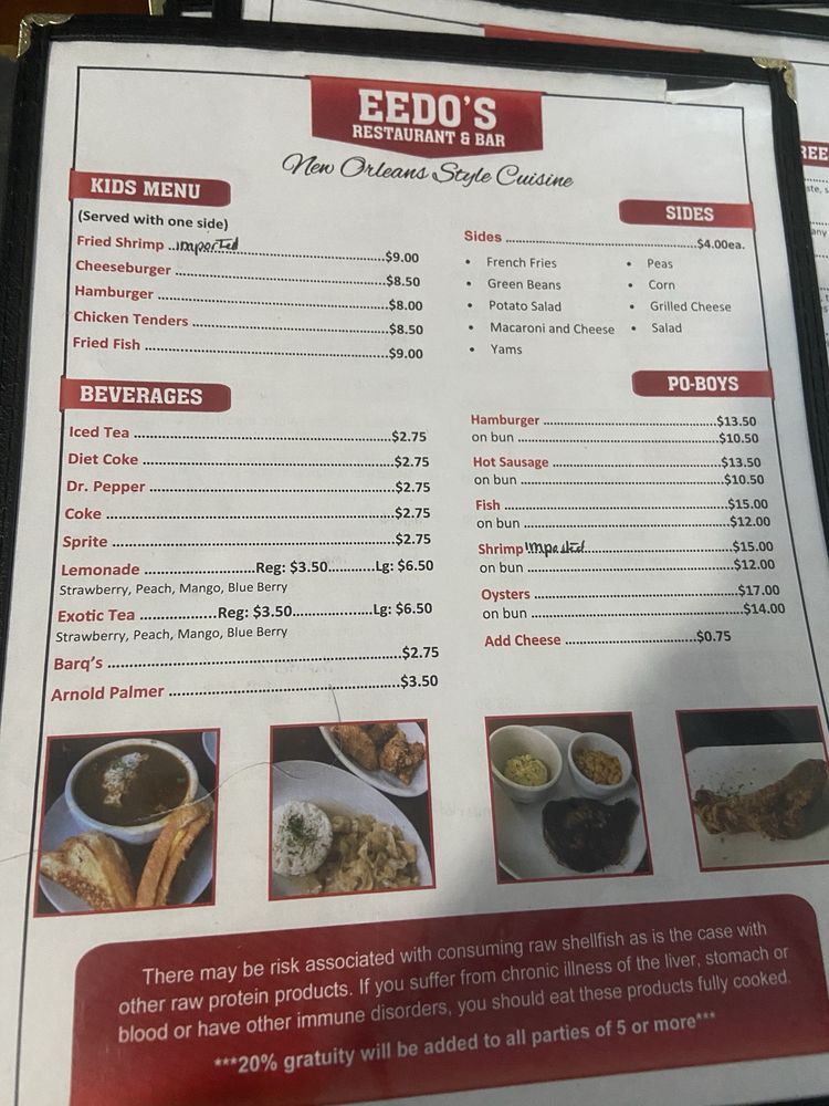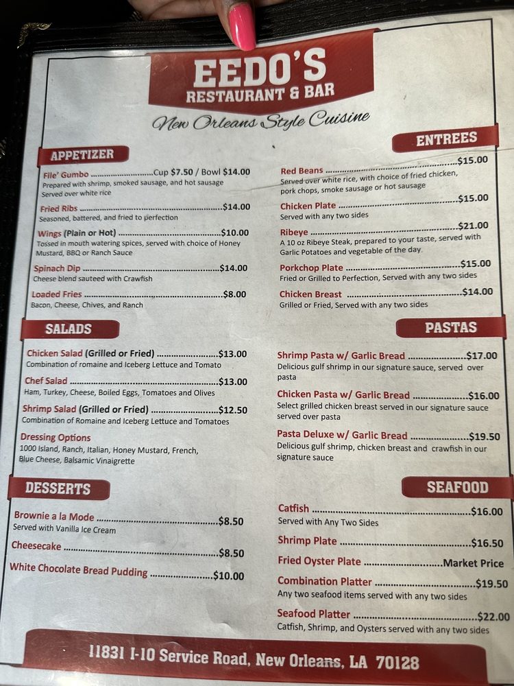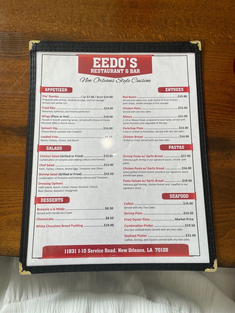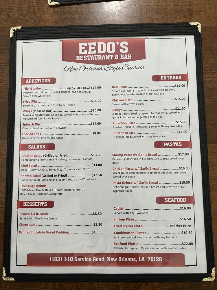 Welcome to Eedo's Restaurant & Bar, where casual dining meets an exquisite culinary journey. Nestled in the heart of New Orleans, this gem specializes in New American cuisine, with a delightful focus on seafood and fresh salads. Eedo's invites guests to savor dishes that highlight the best of local ingredients, ensuring every bite is bursting with flavor.